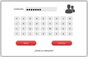 contraseña, dando clic sobre los caracteres, luego clic en