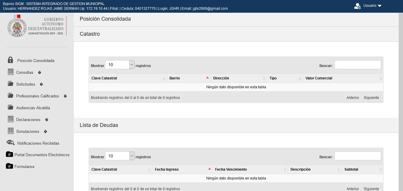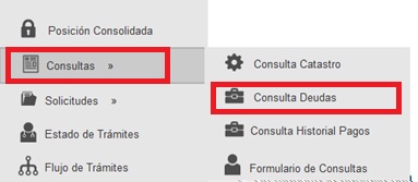 => “Consultas Deudas” ubicado en la parte izquierda de la pantalla en la lista