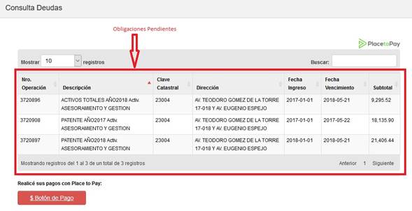 Botón para realizar los pagos |