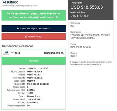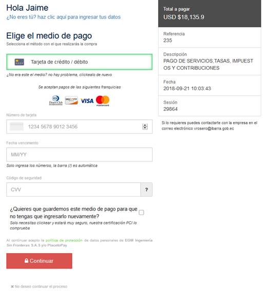 correctos se habilita las opciones de pago como se ve a continuación.