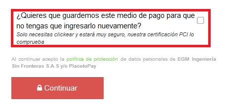 proceso de pago, y si escoge la segunda opción antes de dar clic en el botón
