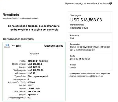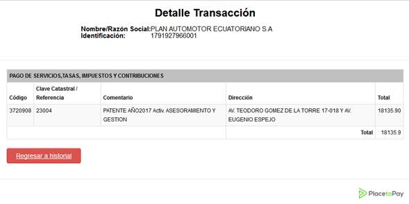 con el detalle del pago.
