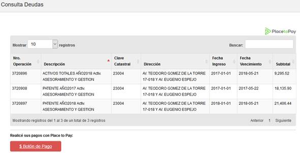 a la página de consulta de deudas.