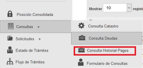 acceder desde la opción “Consulta Historial Pagos” del menú