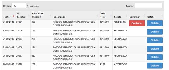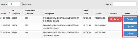 de la Transacción dando clic en el botón Detalle.