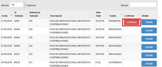 estado pendiente se habilita el botón Confirmar